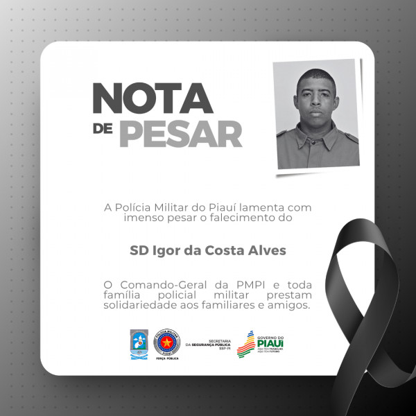 É com imenso pesar que a Polícia Militar do Piauí lamenta o falecimento do soldado Igor da Costa Alves, ocorrido na manhã desta quinta-feira (09).