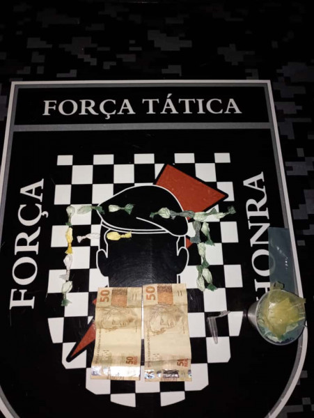 Na busca pessoal, os policiais localizaram mais 11 invólucros da mesma substância e a quantia de R$ 100,00 em espécie, que seria proveniente da venda de drogas, segundo a corporação.
