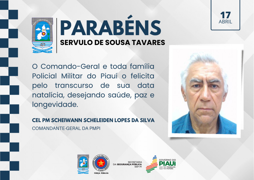 A Polícia Militar do Piauí celebra, nesta data, o aniversário de Servulo de Sousa Tavares